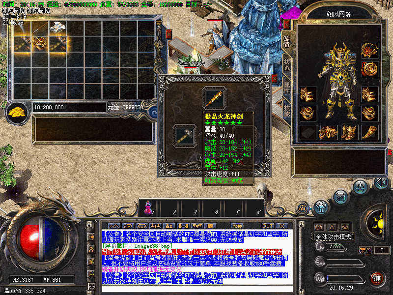 【沙城系统】沙城城主尽显王者风范,可以全服红字公告!武器最多升5点,时间为3分钟左右一次!