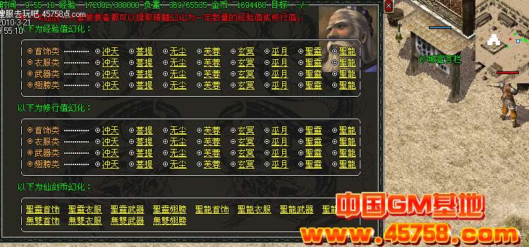 [249]使用装备幻化师的幻化功能可以换取大量修行值、经验值或仙剑币,修行值可在无修禅师处开启多倍经验。