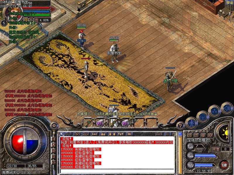 游戏介绍①: 免费泡点地图可以免费泡级.非RMB玩家的首选.无收费闭关修炼.元宝泡点地图.经验超高