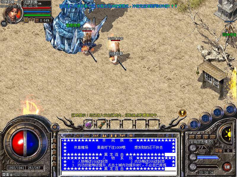 - ☉ V8引擎传奇端游【荒域专属单职业九大陆】Win一键端+配套补丁网站+架设教程