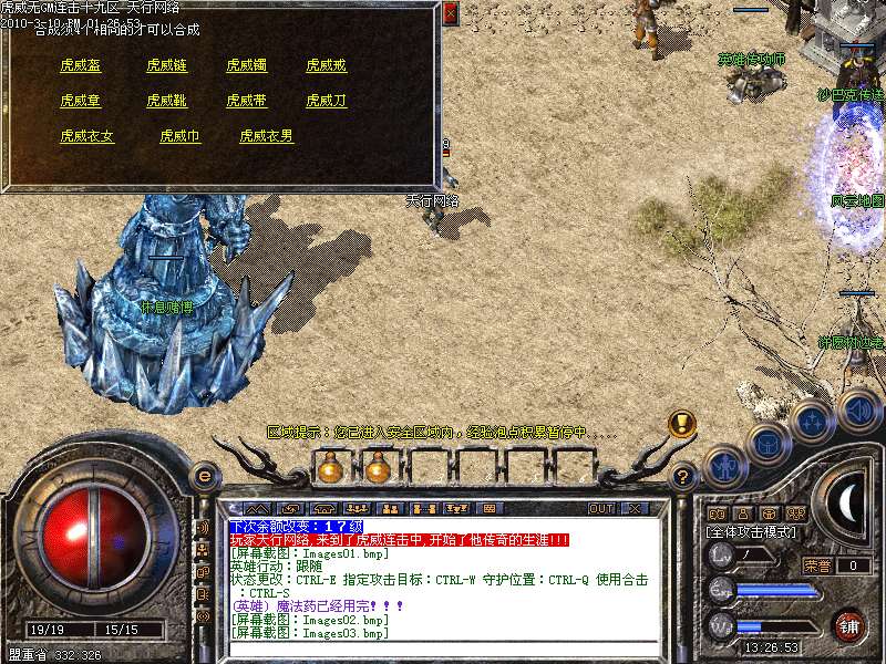 ①.最新加入虎威套,虎威之刃,倚天剑,衣服,荣耀套装,1.2倍攻击+防御的属性,套装更有更无敌的属性
