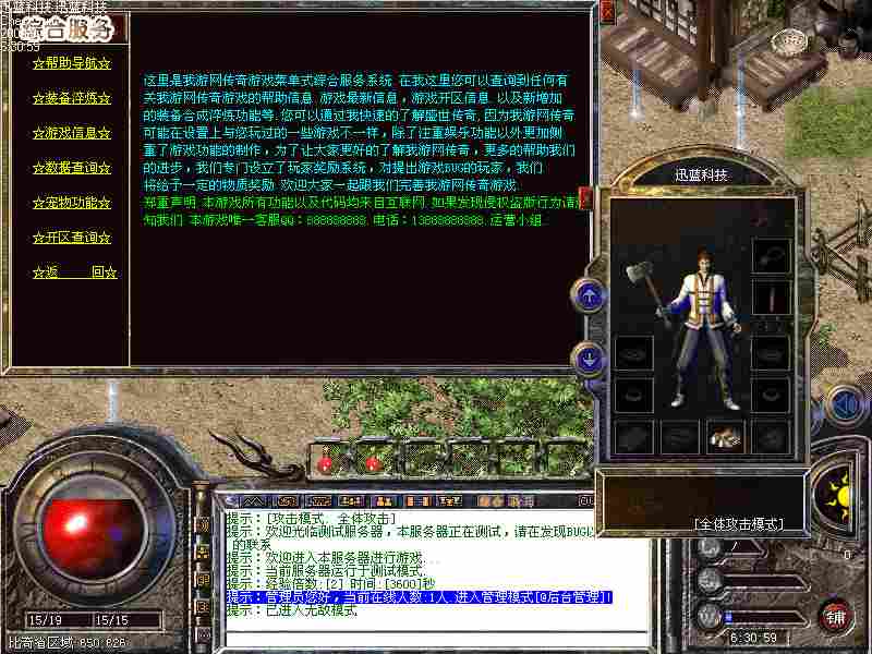 帮助按钮:非常强大的帮助按钮使您的游戏更方便游戏更明晰.在游戏的控制版有[帮助]按钮,或在游戏里输入[@帮助] 此按钮为本服重要特色钮.请玩家进入游戏后仔细查看,内有装备淬炼系统的启动.