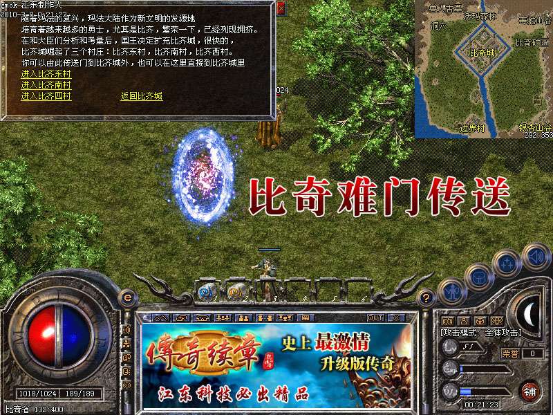 新手出生在比奇:比奇东村,比奇难村,比奇西村 出生地:129*146 上线可以领取英雄