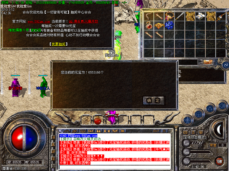 4.增加了元宝抽奖功能.装备回收功能.装备升级50元宝一次!装备改名`200元宝一次可以改自己喜欢的名字
