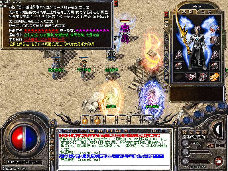 ⒍增加元宝PK场 杀人奖励元宝。叫阵,行会激情令,全服激情令。