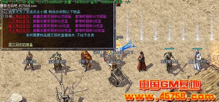 [上古结阵]:玩家在游戏打宝中.可将装备进行回收.每达回收一定程度.系统将自动怪物攻城!