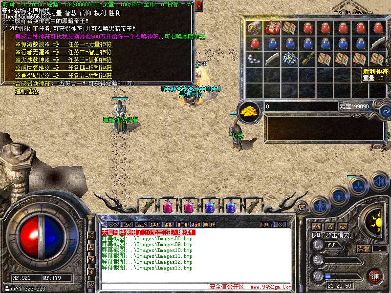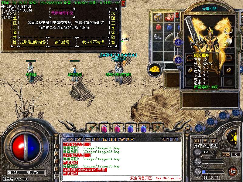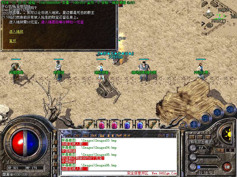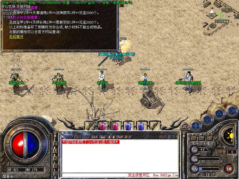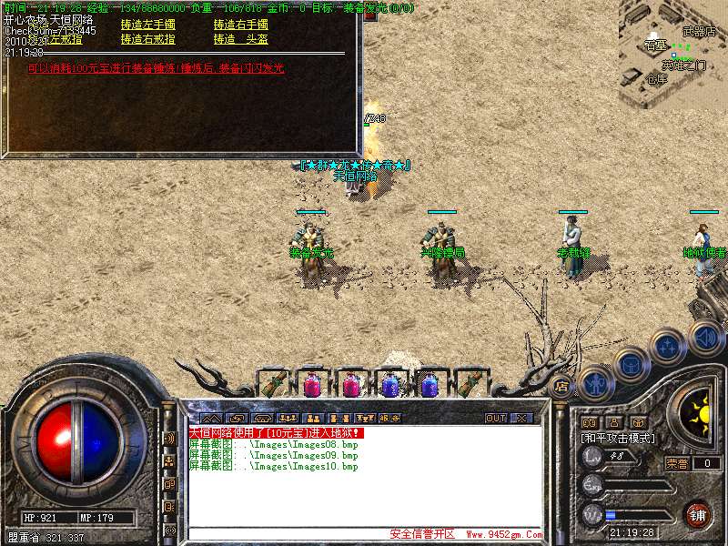 10;元宝PK场;玛法大陆是受法律保护,杀人是要红名,PK场由于远离玛法大陆,所以不受法律的制裁.在里面杀死别人可以获得10元宝的奖励。
