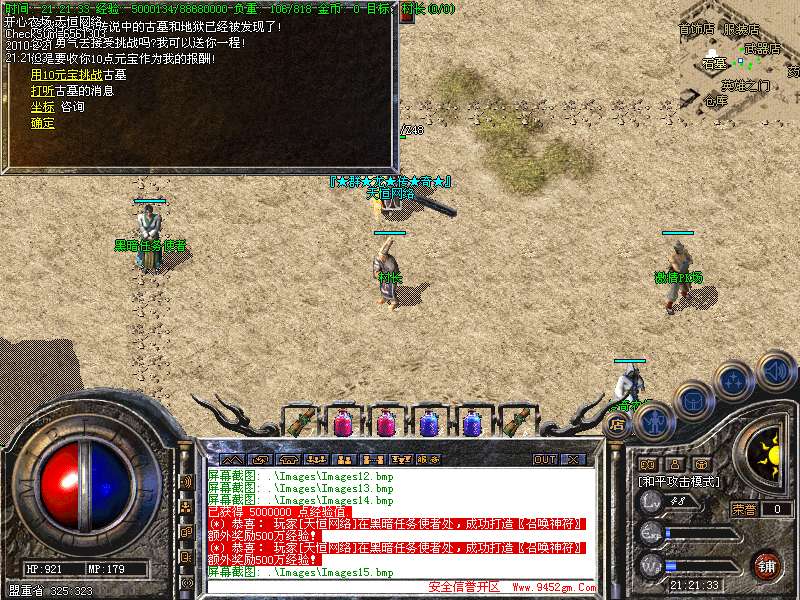 15;村长;震撼性新闻!传说中的古墓和地狱已经被发现了!你有勇气去接受挑战吗?我可以送你一程!但是要收你10点元宝作为我的养老金!