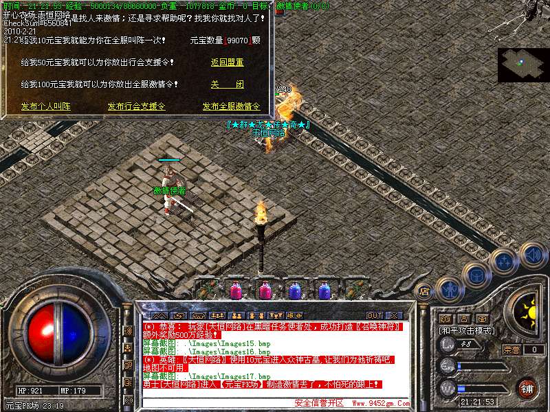 11;激情使者;给我10元宝我就能为你在全服叫阵一次-寻找PK激情,给我50元宝我就可以为你放出行会支援令-找人帮手砍人,给我100元宝我就可以为你放出全服激情令-让全服一起来PK激情。