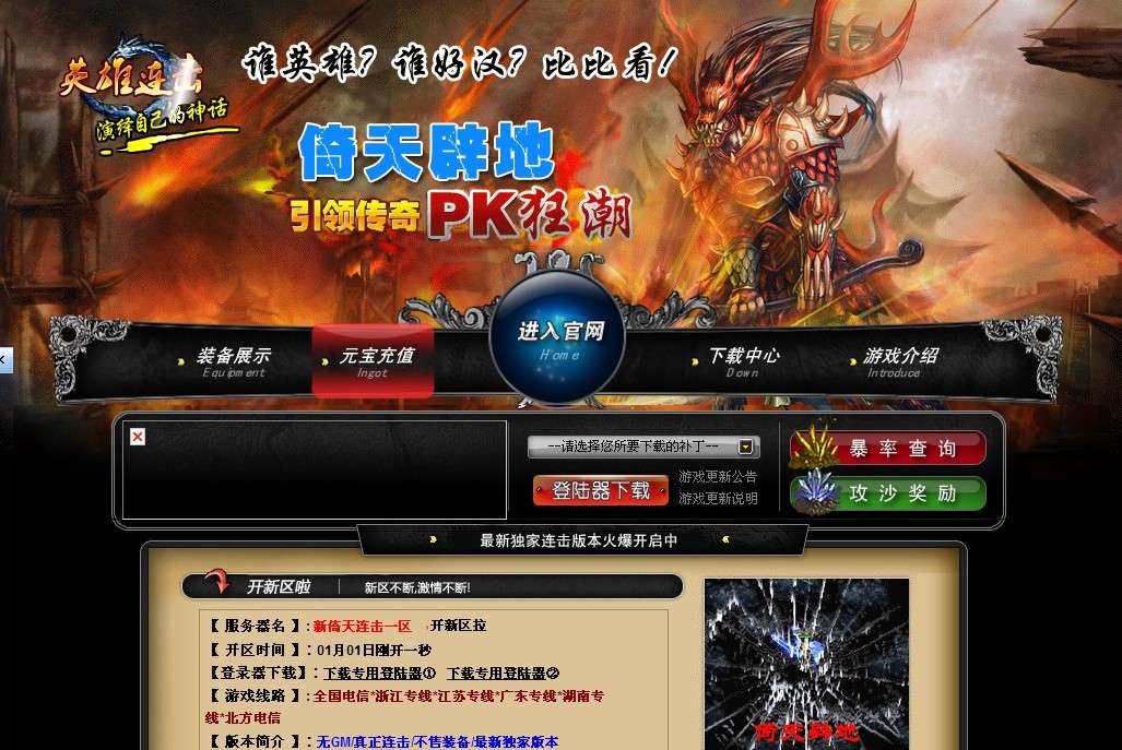 - ☉ V8引擎传奇端游【荒域专属单职业九大陆】Win一键端+配套补丁网站+架设教程