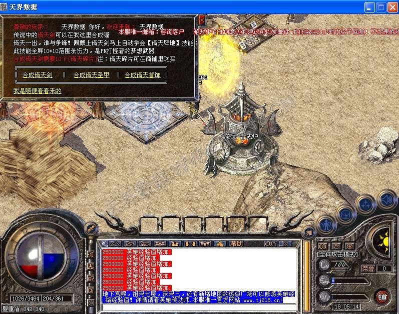 [255,56]本服新增盛大倚天全套,装备可在土城荣誉合成NPC处合成。本服唯一官方网站: