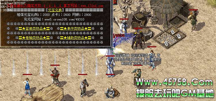 郑重声明:本服务器不出售属性点 不出售等级 破护身头盔 破护身戒指 破复活戒指,为了给玩家提供美好的游戏环境杜绝**物品。