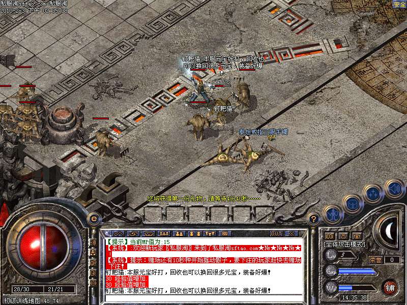 祖马六层:刷每二小时刷一次元宝大帝,心爆100元宝.