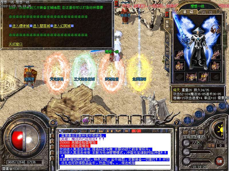 - ☉ V8引擎传奇端游【荒域专属单职业九大陆】Win一键端+配套补丁网站+架设教程