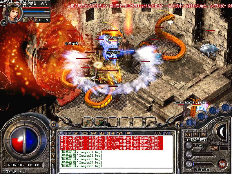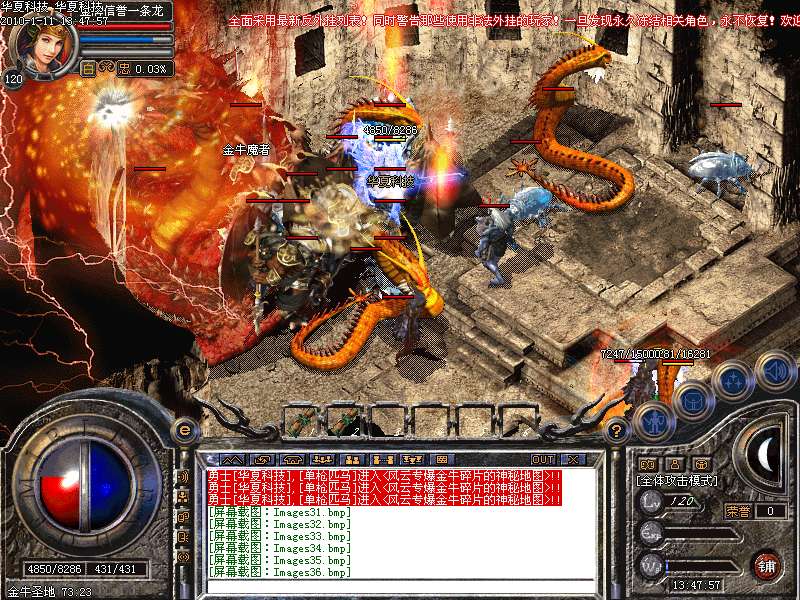 免费泡点区以开通每一个小时刷一次富贵兽,爆金牛装备。1/40的爆率
