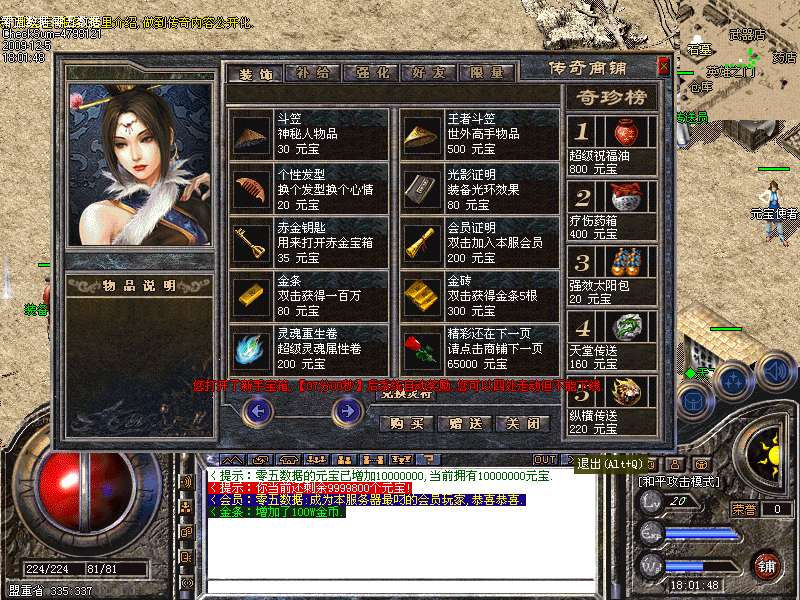 [151]请注意:传送员集成所有的服务功能,本站去掉了所有的垃圾商人,玩家不需要到处跑动就可以买卖修存,希望可以给大家带来更多方便的功能.