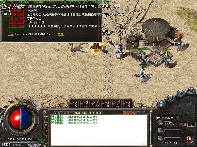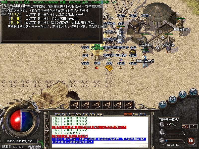 8.样样都俱全了,那么你现在带好药,花费100元宝,去-传送员-转生任务-高级传送服务-皇陵1层一直可以到4层,越底层怪物越多