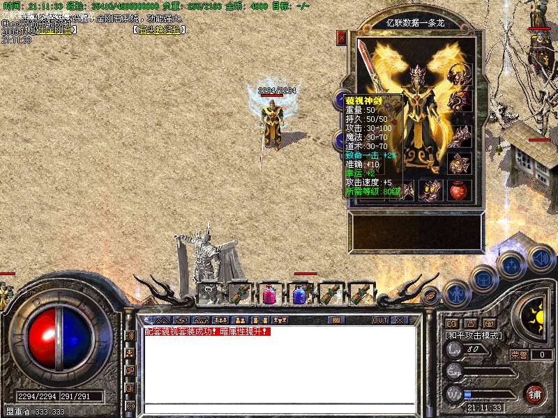 友情提示:服务端最新加入2套装备 分别是荣耀套装 和 藐视套装