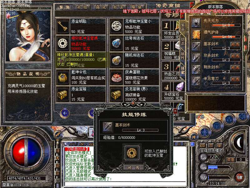 当乾坤玉璧的灵气值充满时,就可以拿来修炼强化技能。乾坤玉璧的灵气点可以去【闭关修炼,和各个高级打宝地图】获得。