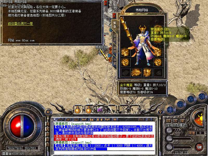 3.终极装备为炎龙三套装,必须靠打,决不出售终极装备跟等级,祝大家游戏愉快!,