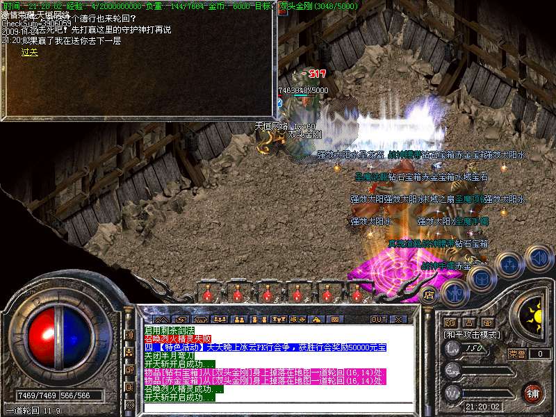 【特色活动】封魔谷皇宫内和土药附近每2小时刷一个老魔,系统每2小时还会在沃玛大厅举行一次大型送宝,可以暴出高级装备!