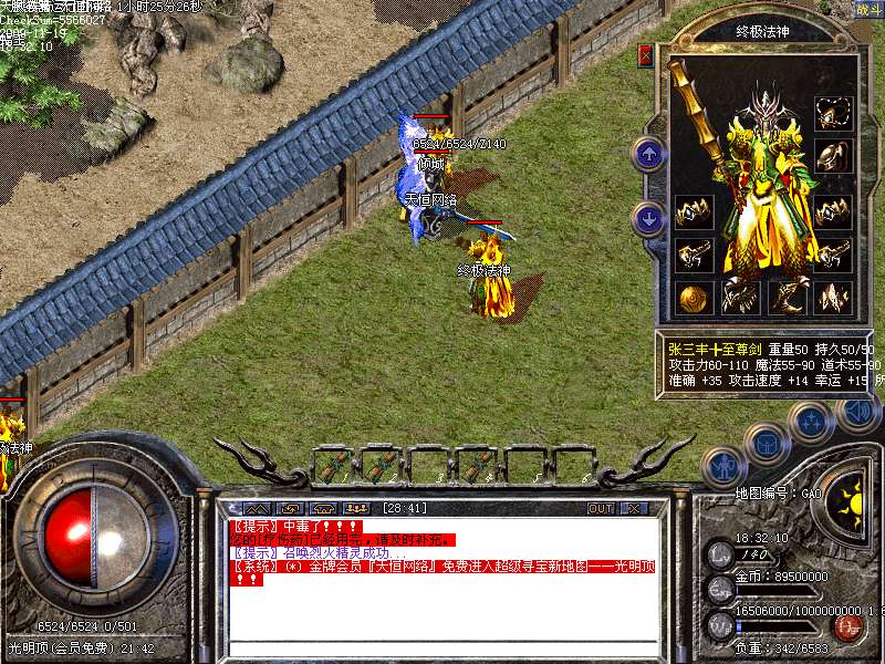 2.金条,声望卷在声望之地获得!!!!专为普通玩家开放的6个升级宝地,刷新快,怪物多.