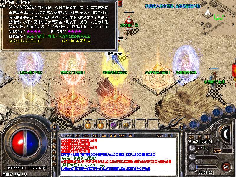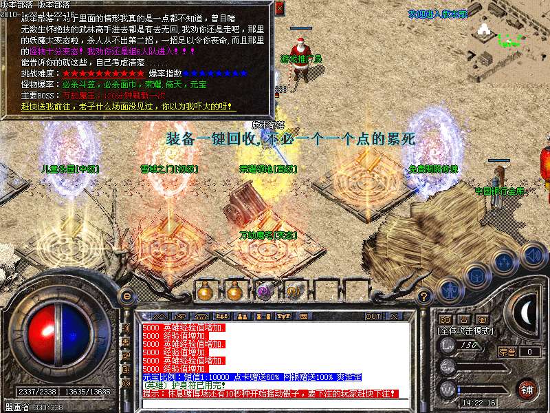 特色迷宫,幸运之门,只要能到最后一关,丰厚装备元宝经验多多