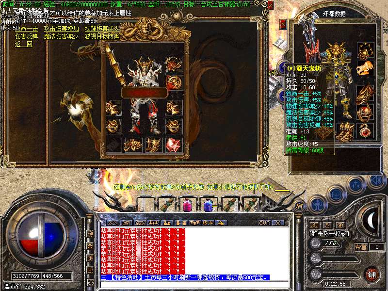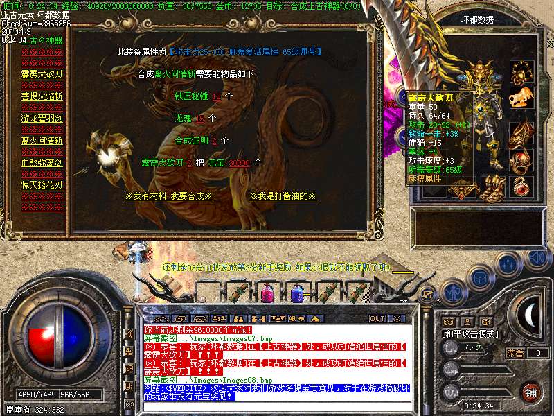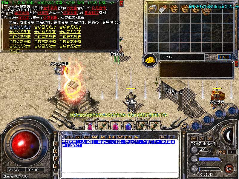 9:增加啊炎龙合成师,可以利用多余的装备+元宝合成炎龙级装备。