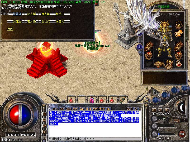 - ☉ V8引擎传奇端游【荒域专属单职业九大陆】Win一键端+配套补丁网站+架设教程