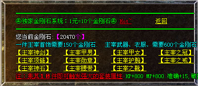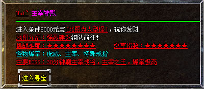 ③.必爆主宰:每天晚上7点庄园宫庭刷一虎威必爆怪,将爆一套主宰装备