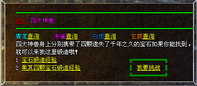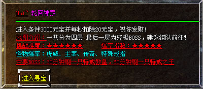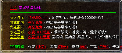 此时你可以去<新手寻宝>,五大基本装备地图,不怕你打不到好装备。