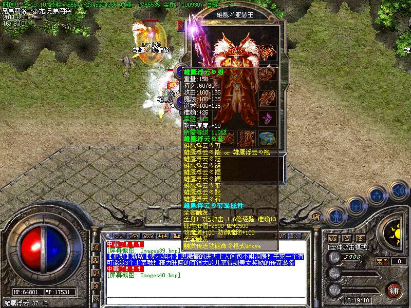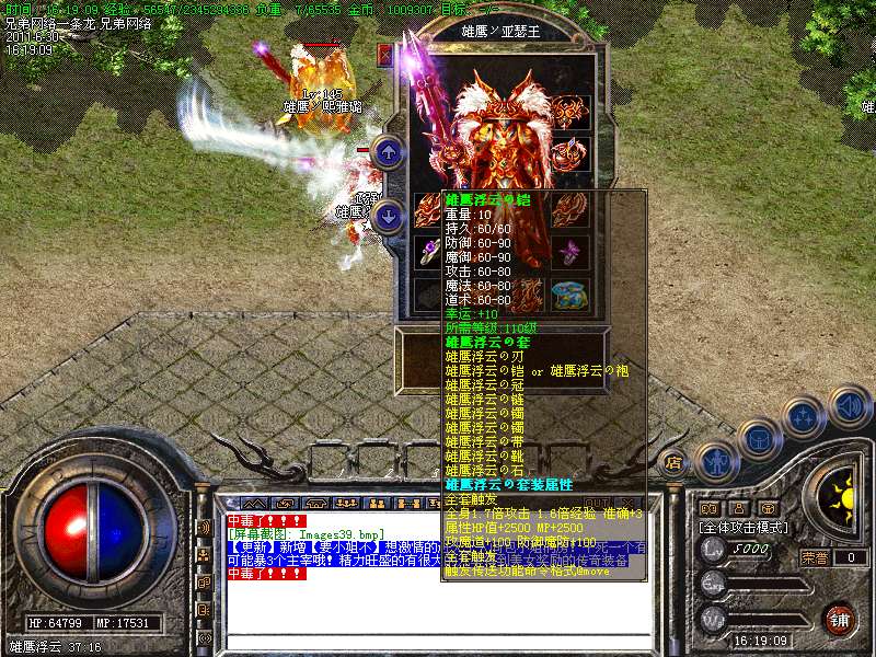【更新】新增【雄鹰浮云】超漂亮的顶级套,超高的属性!请到下载好补丁, 华丽的外观谁看了都会心动!全套出发HP+2500,MP+2500.攻魔道+100.已激发