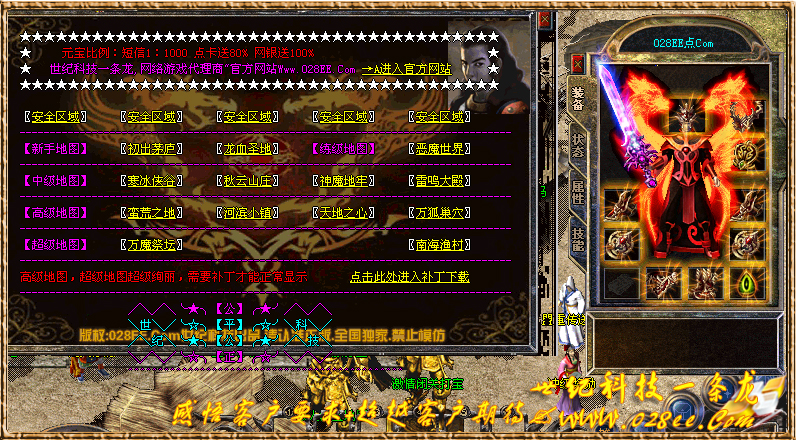 - ☉ V8引擎传奇端游【荒域专属单职业九大陆】Win一键端+配套补丁网站+架设教程