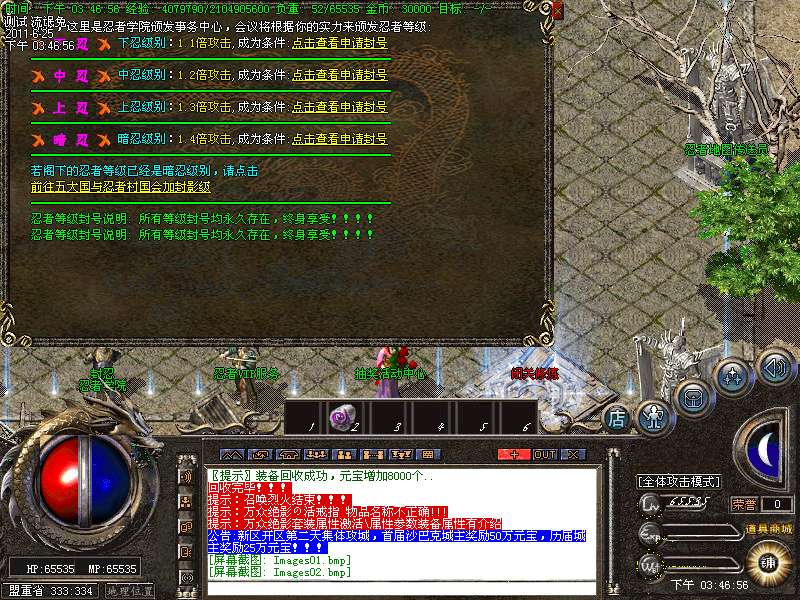 【影级设置】 本服的火影等级分别为:下忍,中忍,上忍,影级分别为:土影|风影|水影|金影|火影|冰影|雷影|万众绝影
