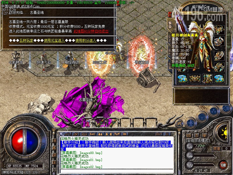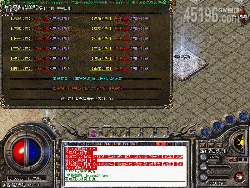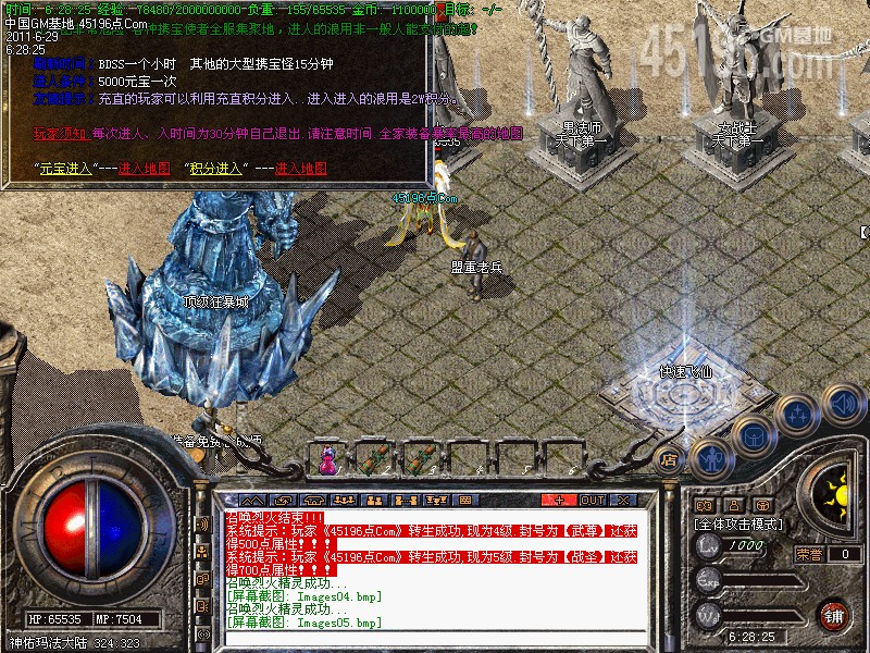 六.【特别地图】本服加入了七彩转身:转身的级别越高得到属性点越多.有些地图可是免费进入的哦!!