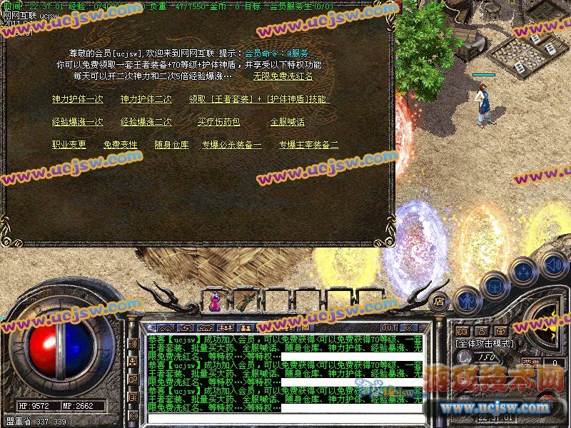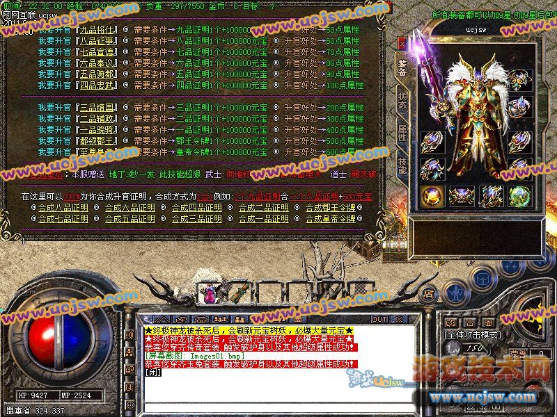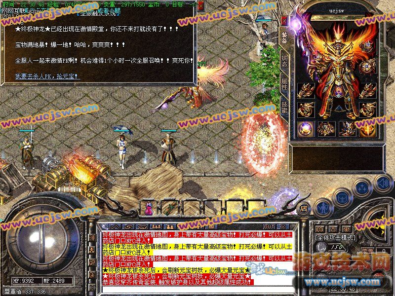 【元宝比例】: 短信1:50000 点卡送80% 网银送100% 另送金钢石!