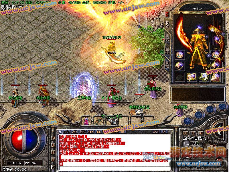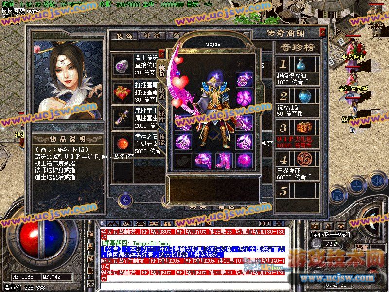 4.本服会员为≮圣灵VIP≯,命令:@圣灵网络,有专属会员地图,还新增≮VIP精灵走廊≯,狂爆所有装备。更是可以进入三界神话地图,爆本服终级弑神装备。