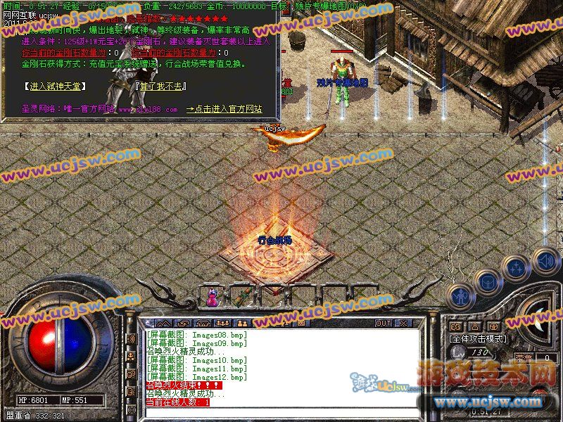 13.本服4个高级地图,可爆出屠魔,灭世,地裂装备,进入条件很简单,专为免费玩家开放的。