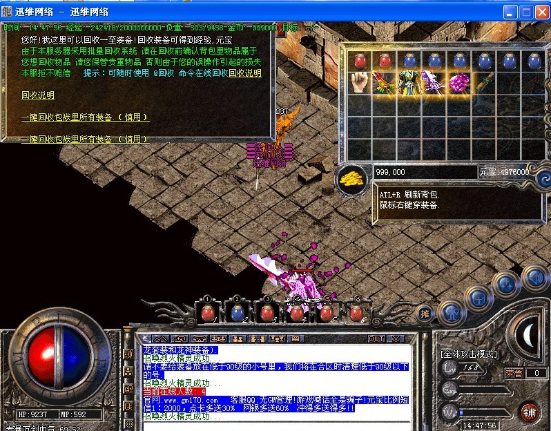 4.新增装备回收、合成、热血任务、热血精灵积累、超新娱乐.