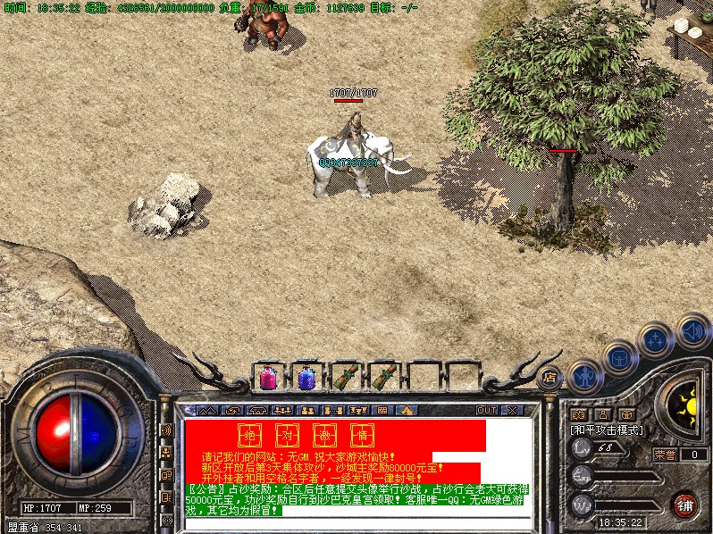 <255,220>〖公告〗本服特别强调三职业平衡。战士烈火加强。法师火墙超猛。道士除了技能加强。52级以上可以召唤出7级白虎