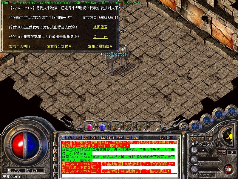 〖公告〗PK场刷出的三只雷霆战士,护殿红衣,青衣尊者必爆精炼宝石一个。很有可能暴出神泣勋章和天下勋章哦。