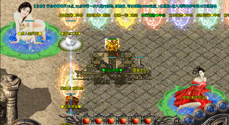 ②.刚进入游戏的时候请点新手接待员进入此地图可以打到初级装备以及元宝!!
