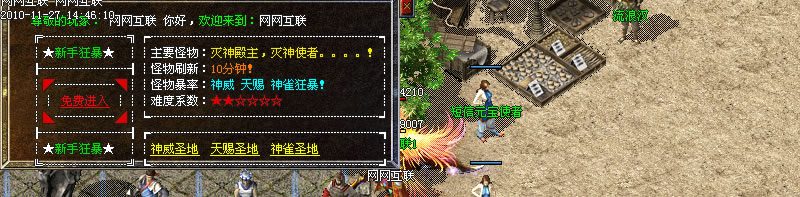 《天神巢穴》 土城新增地图进入 怪物: 龙神恶魔、龙神刀客、龙神闪电鹰、龙神魔王、火龙神、千年妖树、困兽林守护者 掉落 狂雷、王者、炎龙级别首饰 武器 金牛装备