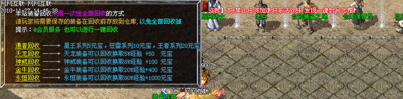 9.精心添加装备互换装备回收系统,不用为打到装备职业不符的苦恼,没用的装备可以回收换取超高的经验和元宝!