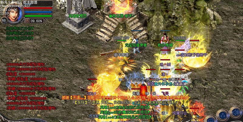 游戏活动④:大师闭关修炼区内有一团火焰,据说是三味真火,站在上面每秒可获得三千万经验,三味真火玩家必争