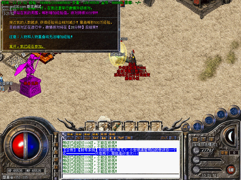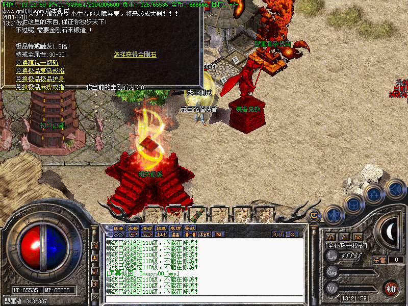 1.平衡了三职业!人物上线就送新技能和大量财富包括元宝!升级无需打怪!泡点直接到顶级!.