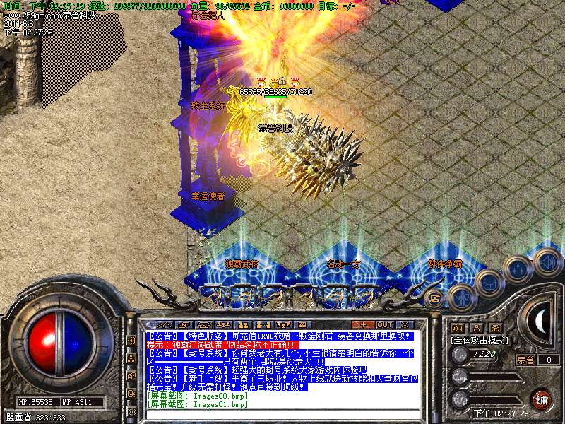 【转生系统】人物转生需要到盟重土城左边的转生雕像那里完成转生.转生后可获得属性奖励.还有酷炫的转生封号.