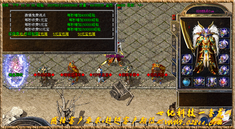 ③.新手回土城后可以去魔龙等地图,装备一键回收元宝,方便!