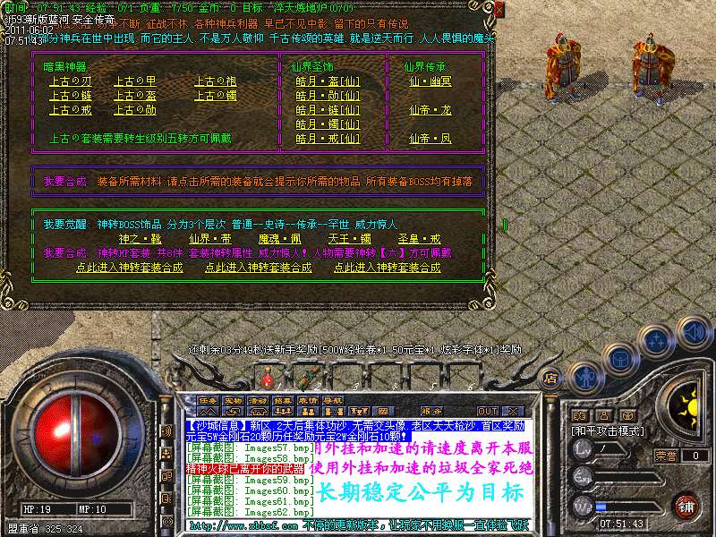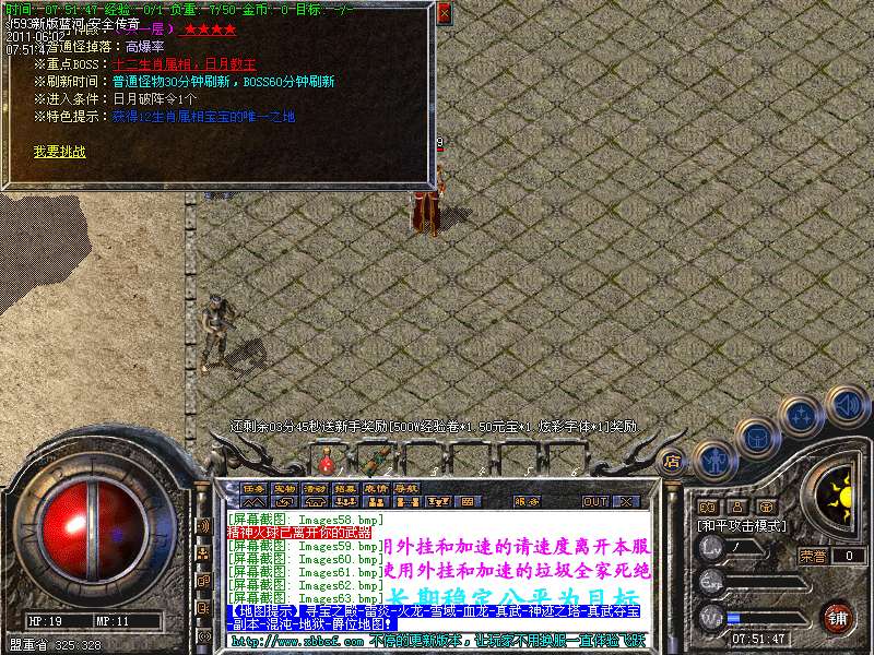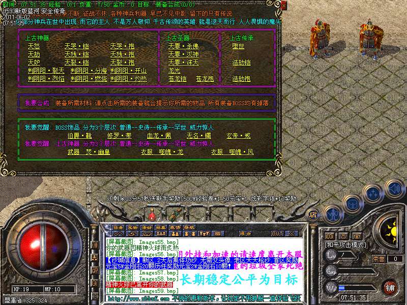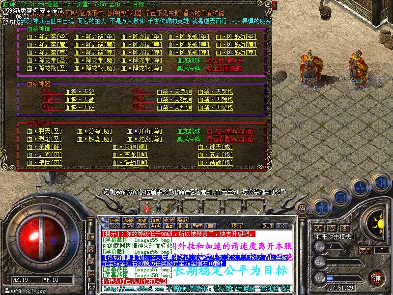 [251]【游戏公告】本服:新添加了玛法迷失5大终极地图,里面终极boss好暴金刚石,人民币,高级装备。