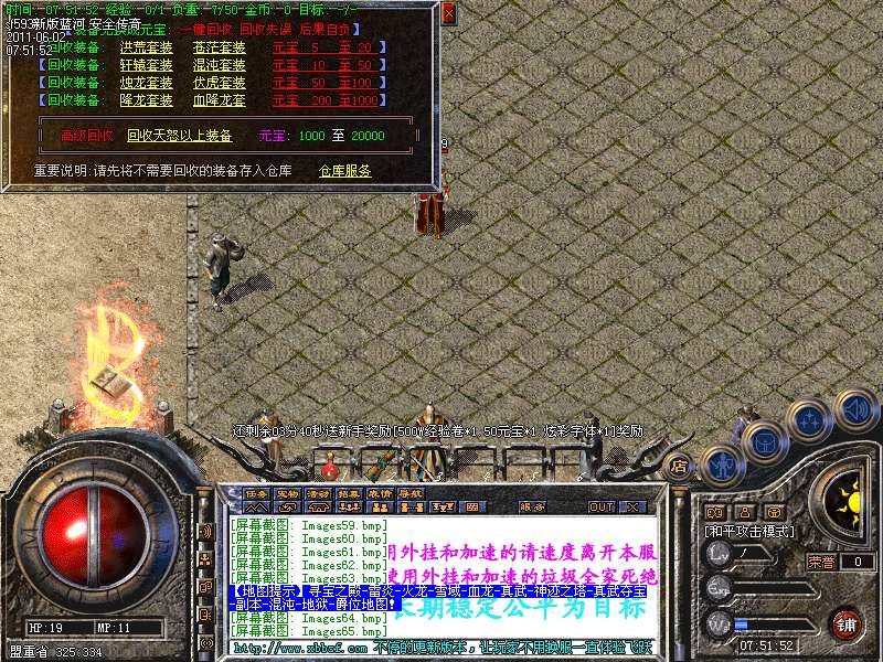 【温馨提示】本私服无G M 管理77自称Gm均为骗子唯一充元宝方式在登陆器.网站.进行充值.比例 短信1:1000 点卡1:1700 网银 1:2000
